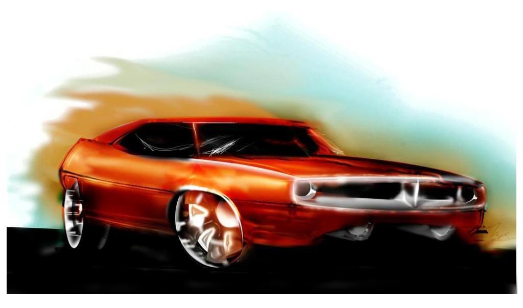 Карандаш, акварель. Праэскиз оранжевой Cuda (Выкладывал ранее)